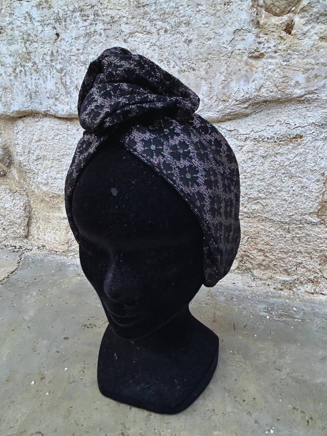 À mi-chemin entre le bandeau et le turban, ce modèle flexible se met en place en quelques secondes grâce à sa tige métallique intégrée.