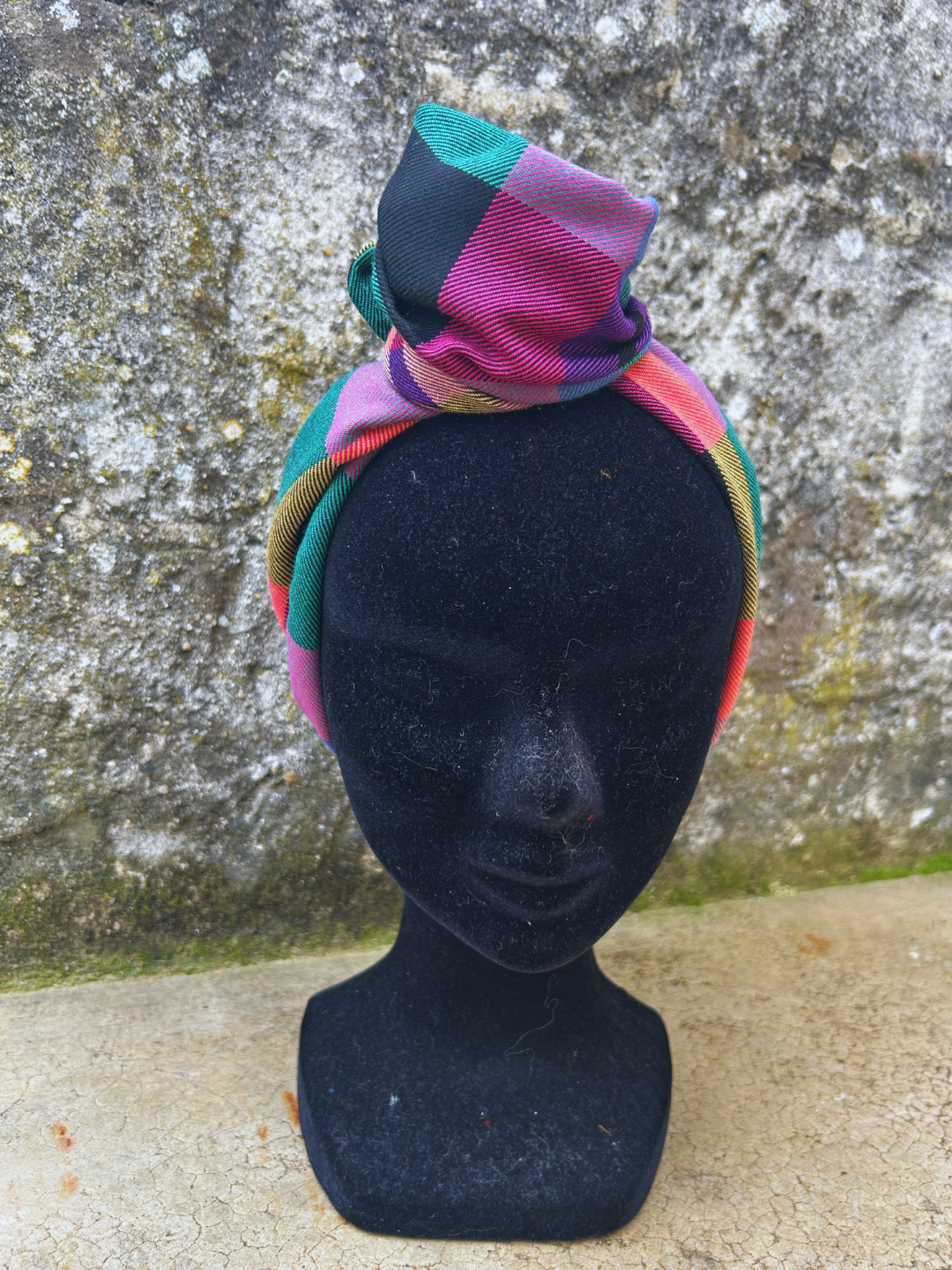 Bandeau Louna tissu carreaux lainage multicolore à Tige Métallique