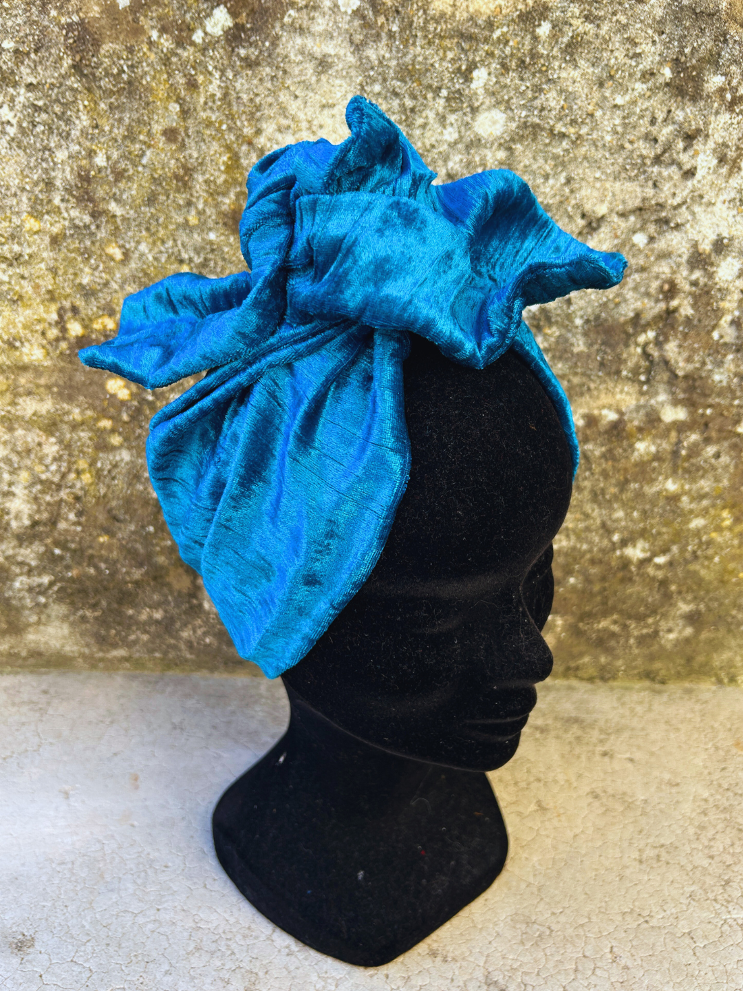Bandeau Frédérica tissu velours bleu canard à Tige Métallique