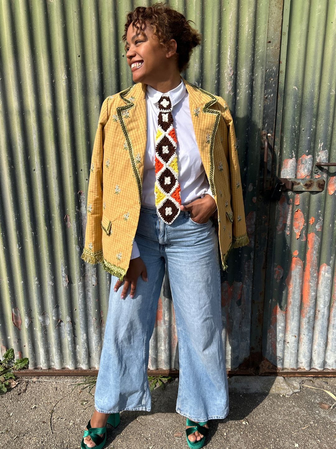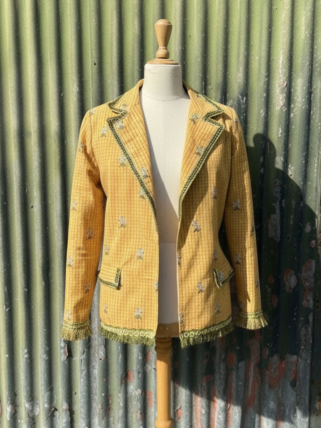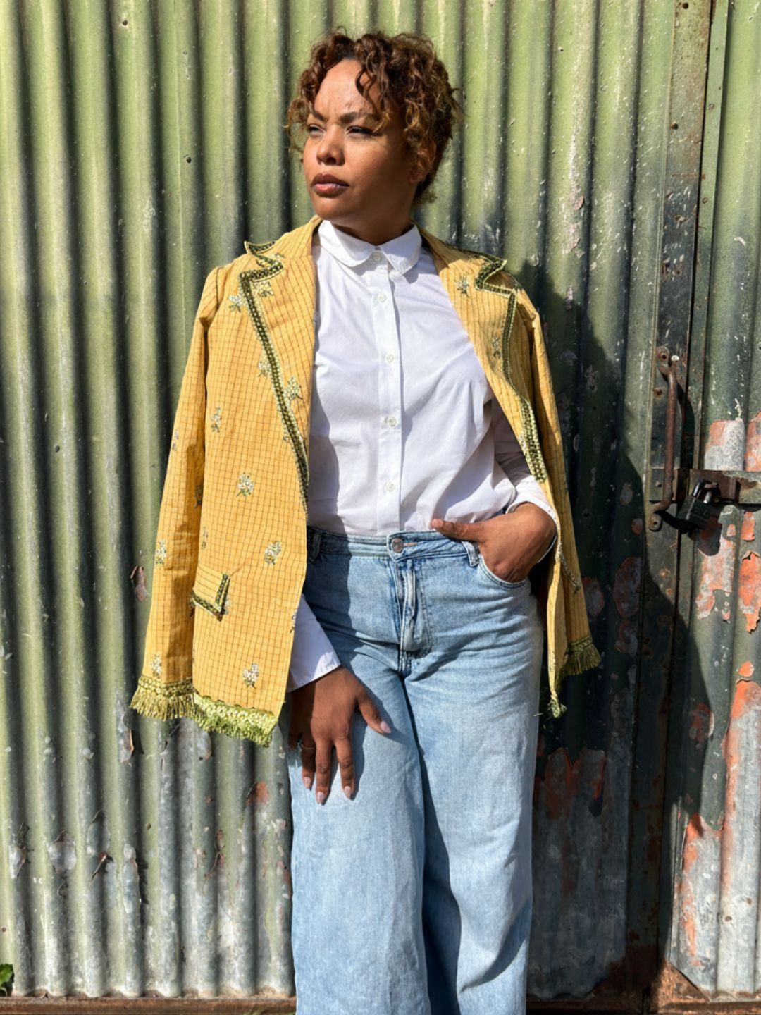 BEATRICE - VESTE BLAZER JAUNE CARREAUX BRODEE