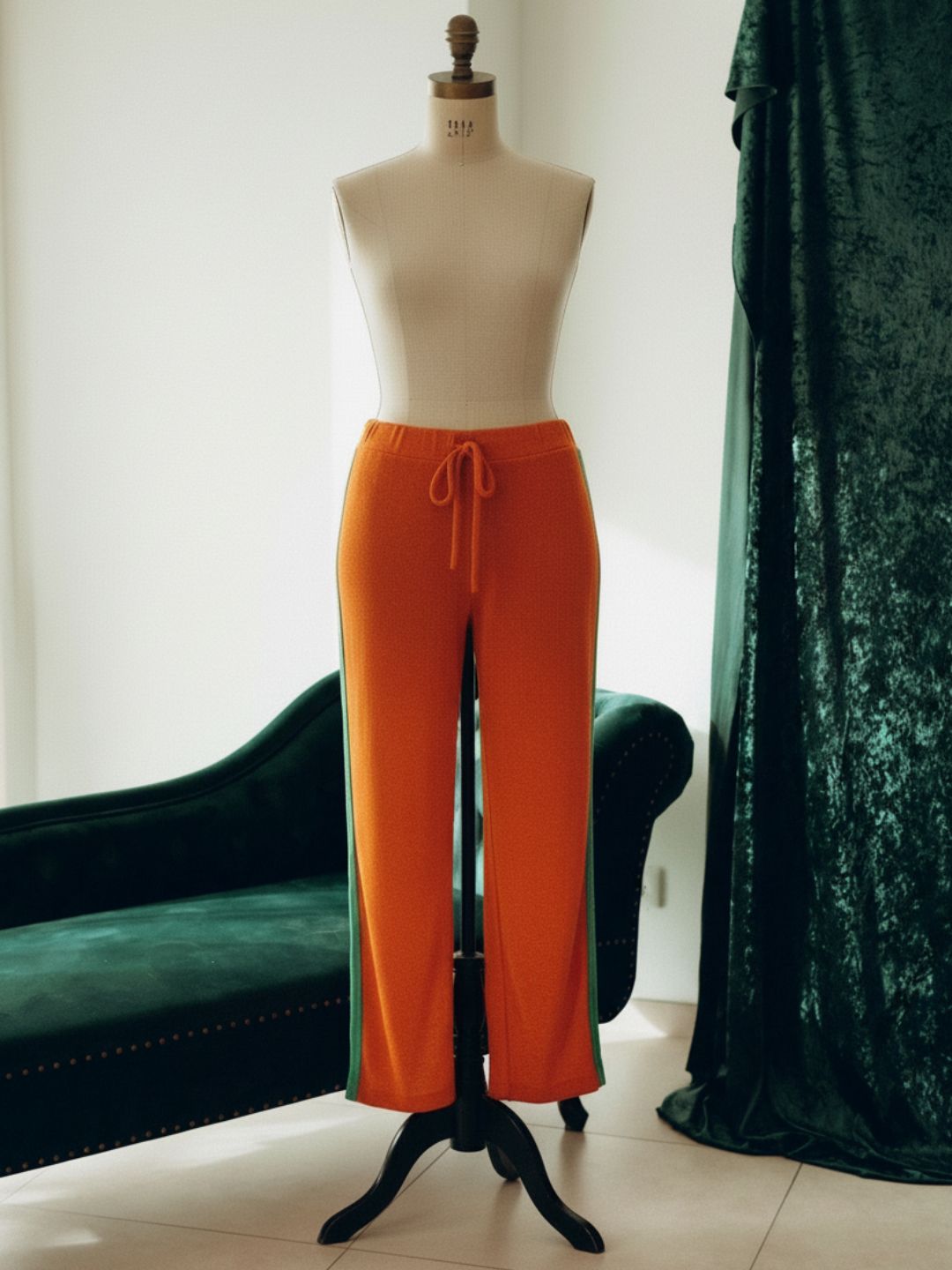 ZELIE - PANTALON LARGE MAILLE ORANGE ET BANDES VERTES