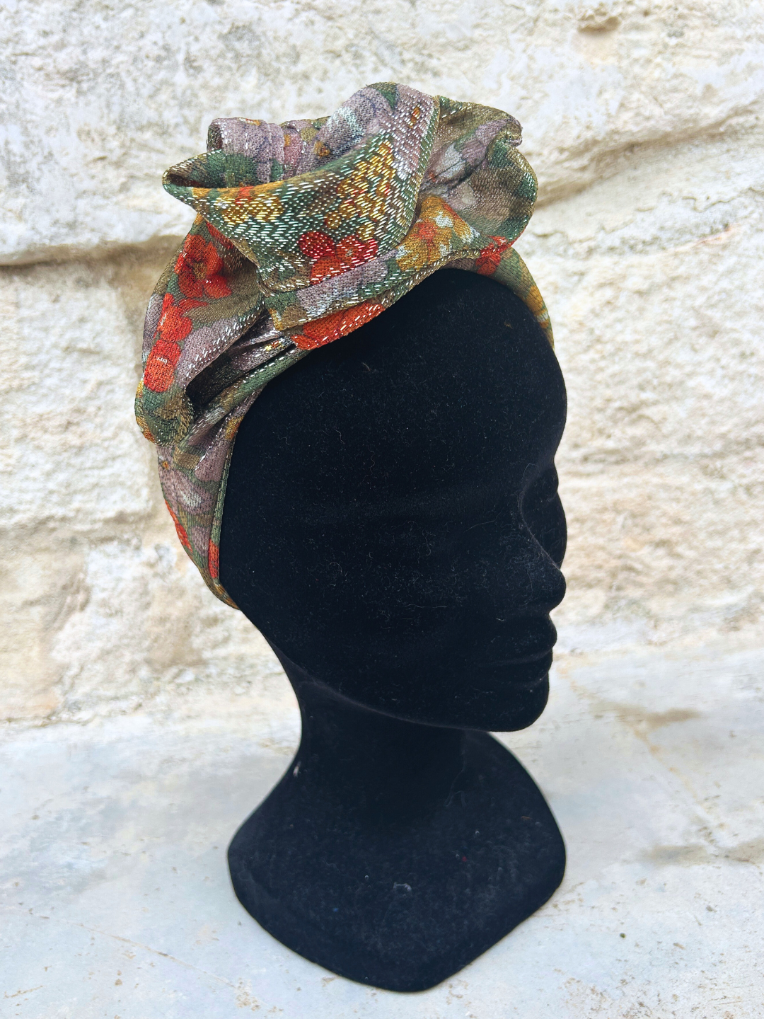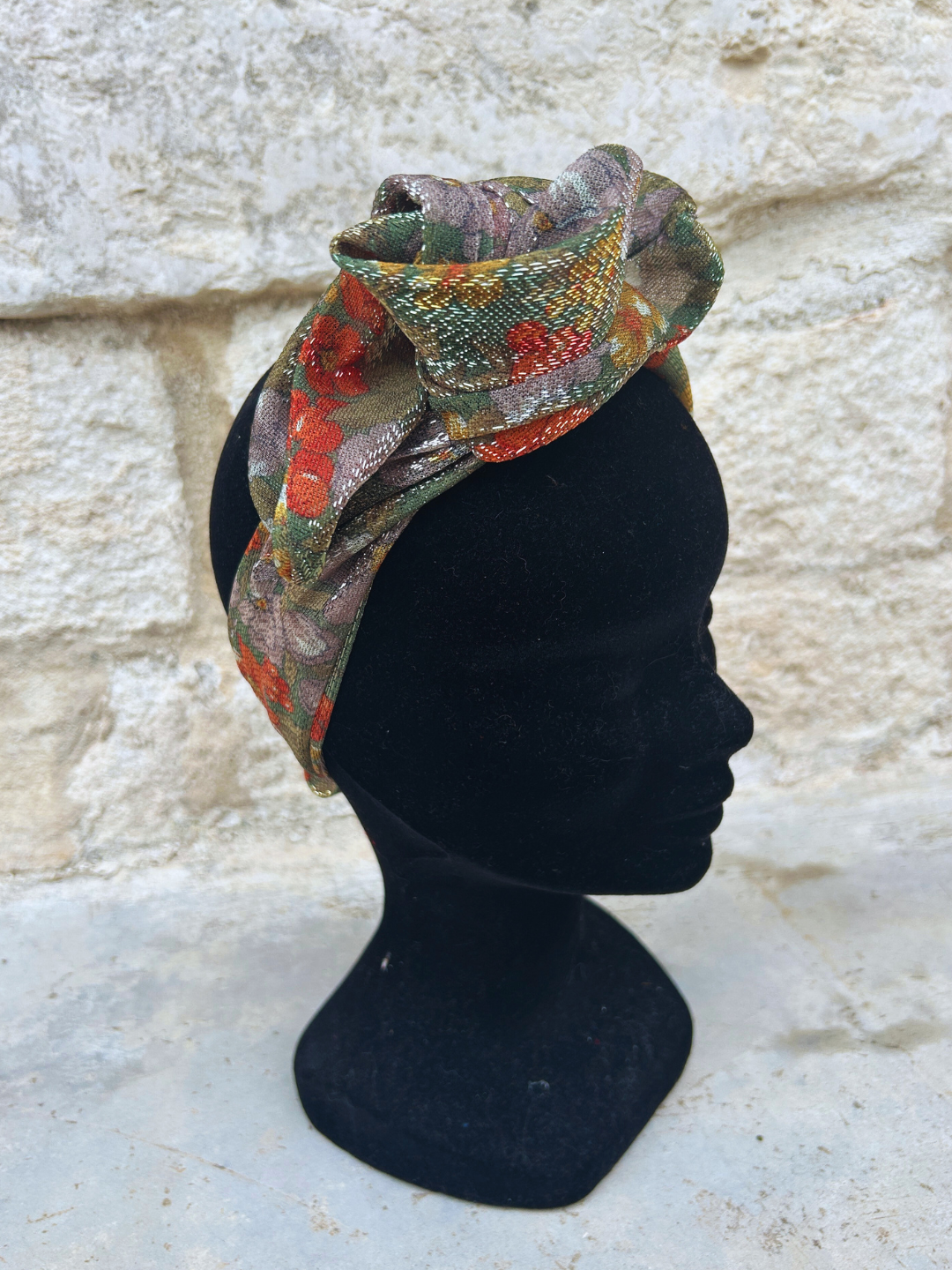 À mi-chemin entre le bandeau et le turban, ce modèle flexible se met en place en quelques secondes grâce à sa tige métallique intégrée.