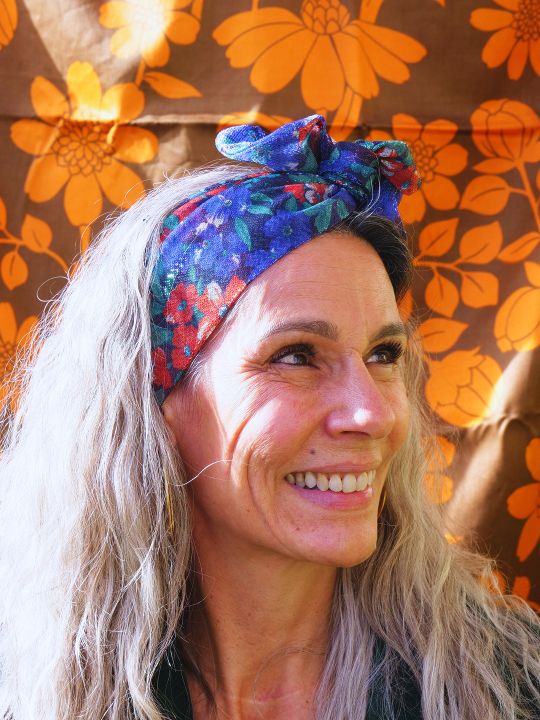 BANDEAU LISA - TISSU LUREX BLEU NUIT FLEURS