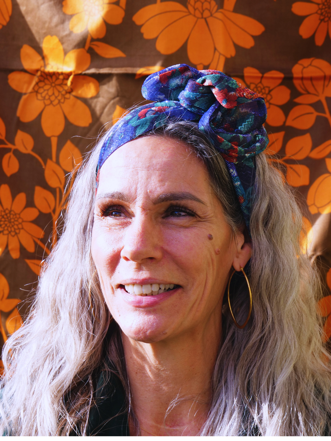 Bandeau tissu lurex bleu nuit fleurs à Tige Métallique